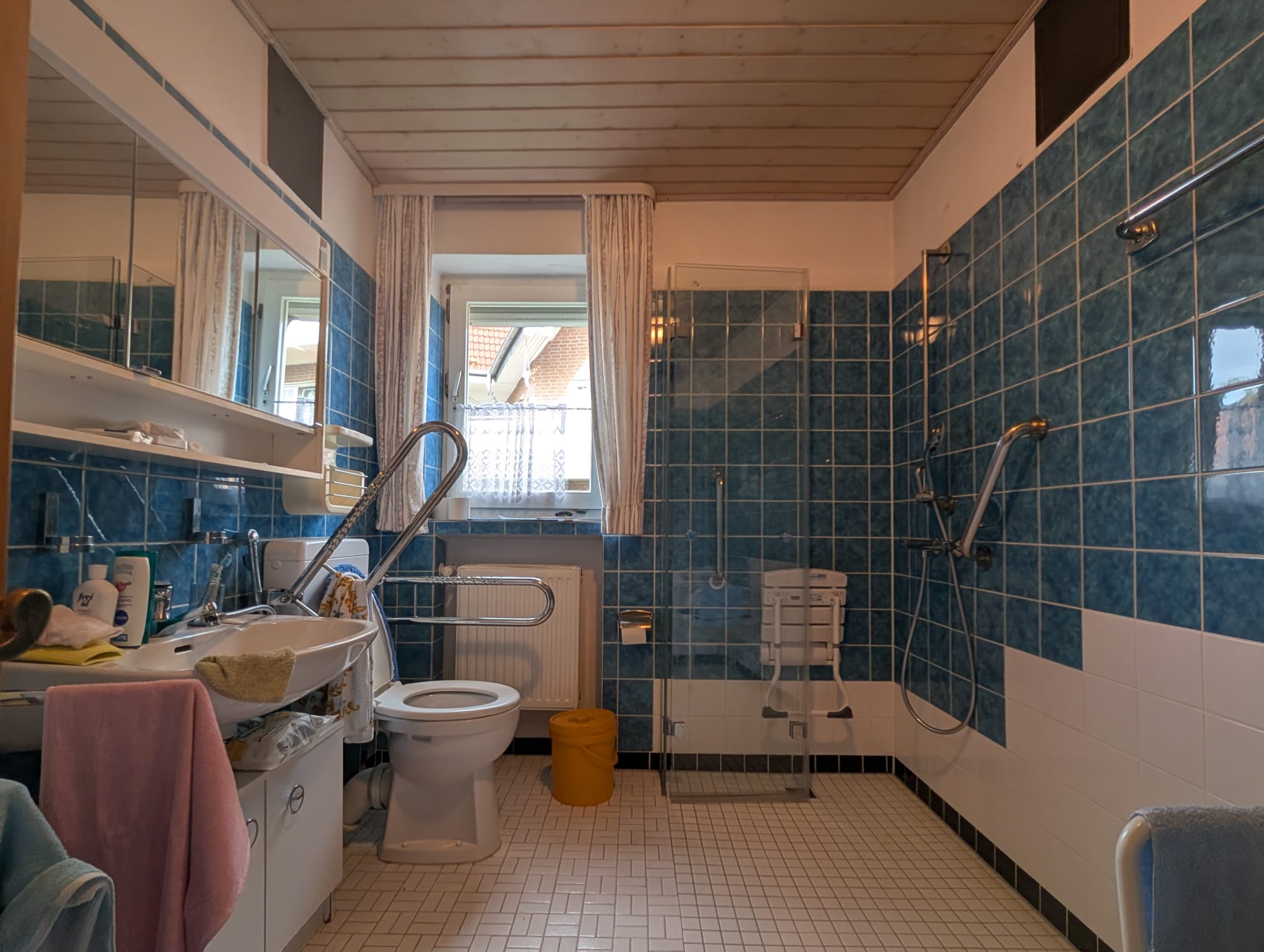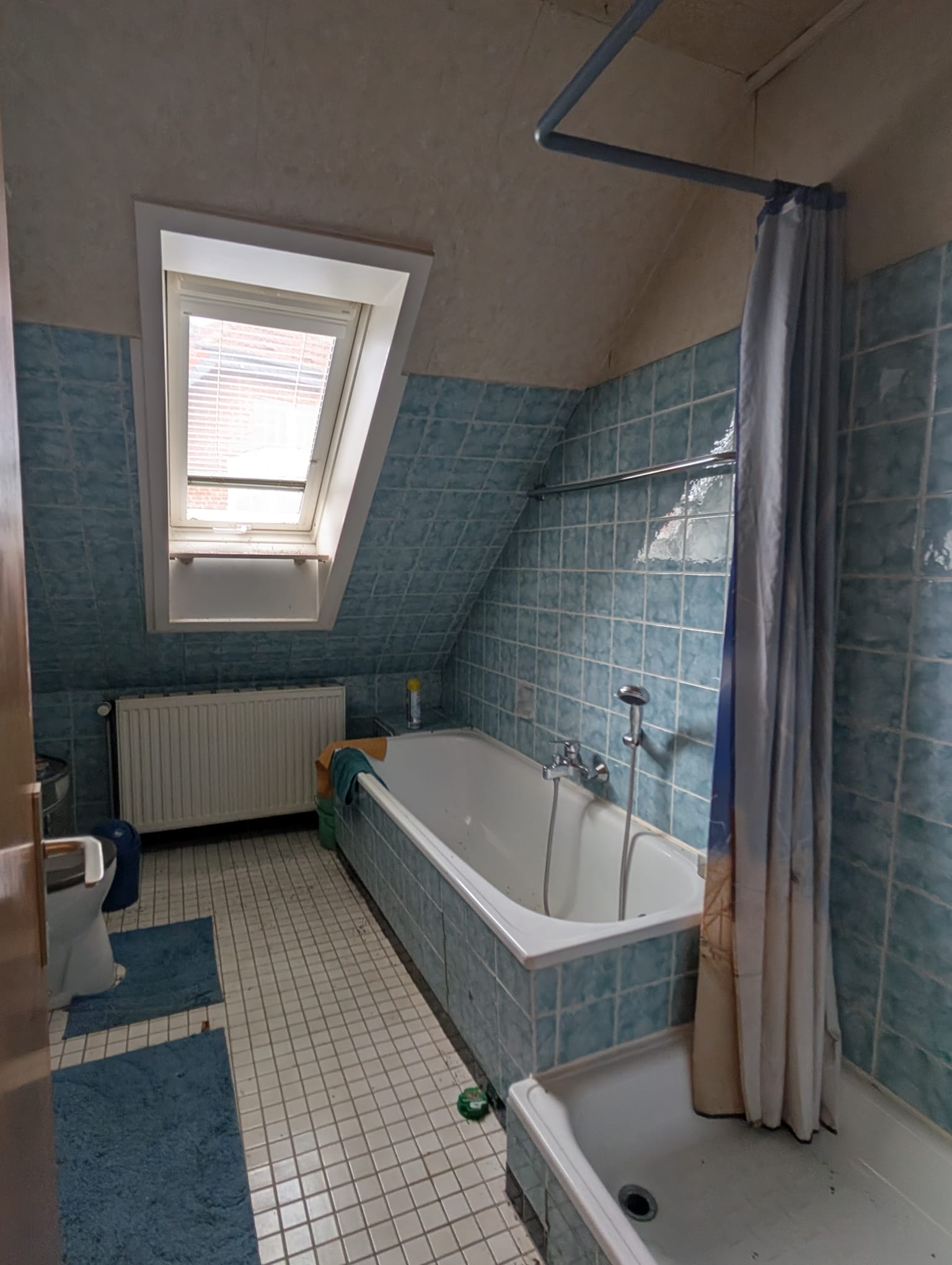 – Badezimmer mit Fenster, Dusche und Badewanne