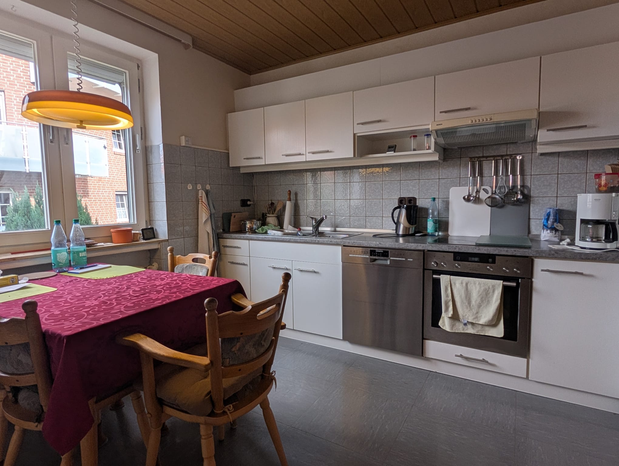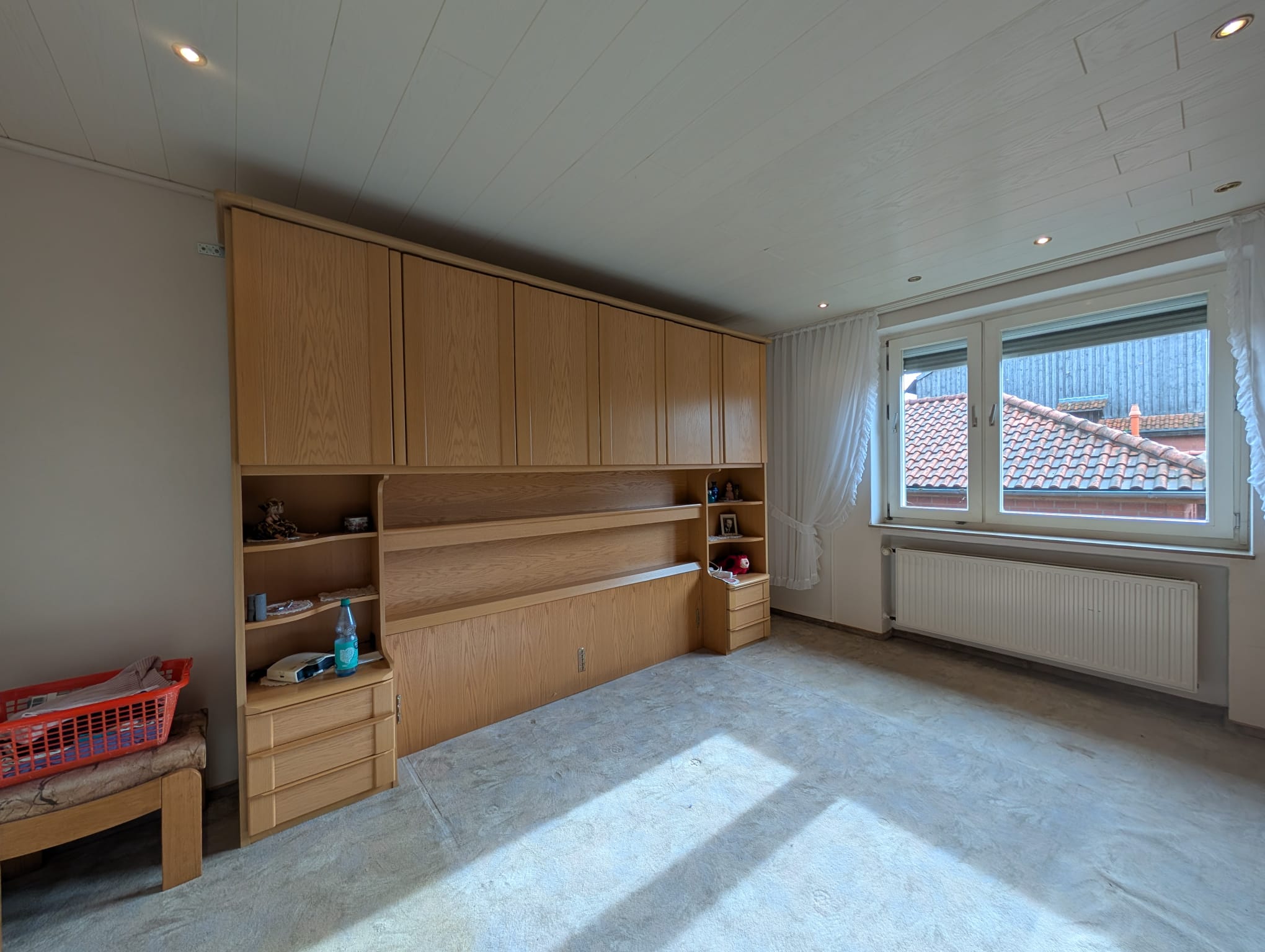 Mit einer gesamten Wohnfläche von ca. 160 m², verteilt auf zwei nahezu identisch geschnittene Wohnungen mit jeweils eigener Küche und Badezimmer, eignet sich die Immobilie ideal für zwei Generationen, Kapitalanleger oder als Mischlösung aus Eigennutzung und Vermietung. Im Erdgeschoss ist der Wohn- und Essbereich offen gestaltet und bietet Zugang zur teilweise überdachten Terrasse. Im Obergeschoss wurde dieser Bereich unterteilt, wodurch ein zusätzliches Schlafzimmer entstanden ist. Der nicht ausgebaute Dachboden ist über eine Dachluke erreichbar; das Dach ist mit Frankfurter Pfannen gedeckt. Die Immobilie ist vollunterkellert und verfügt somit über genügt Stauraum, um diese den einzelnen Wohnungen zu ordnen zu können. Die Öl-Heizung wurde im Jahr 2018 erneuert.