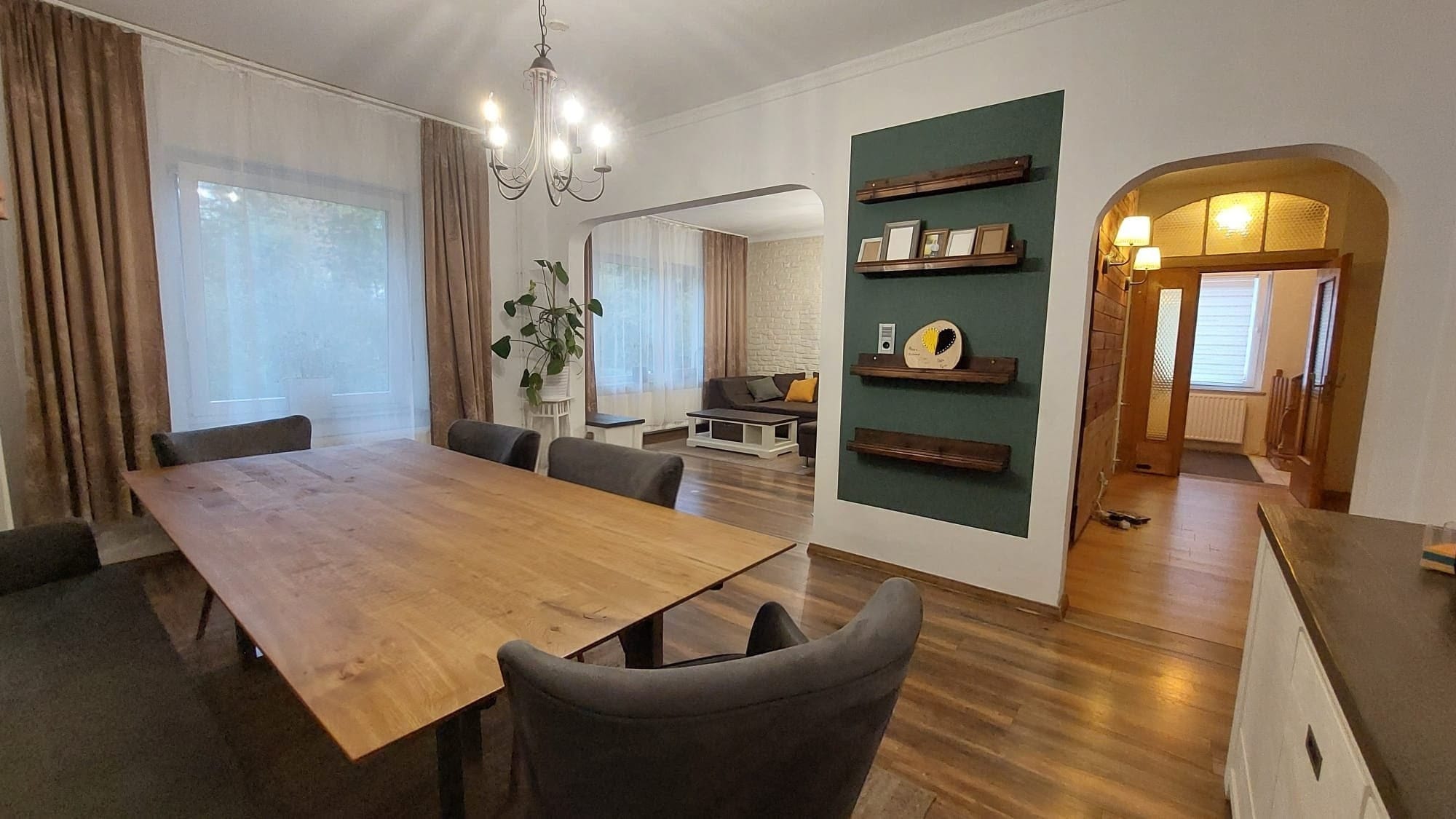 Das Wohnhaus überzeugt mit einem durchdachten Raumkonzept über zwei Etagen. Der großzügige Wohn- und Essbereich lässt viel Licht durch die großen Fenster, der Kamin erzeugt eine angenehme Wohnatmosphäre. Die maßgeschneiderte große Einbauküche lässt keine Wünsche offen und erleichtert den Alltag mit cleveren Lösungen. Ein kompaktes Gäste-WC im Treppenhaus mit eigenem Fenster sorgt für wortwörtlich frische Luft und mehr Komfort im Wohnbereich.