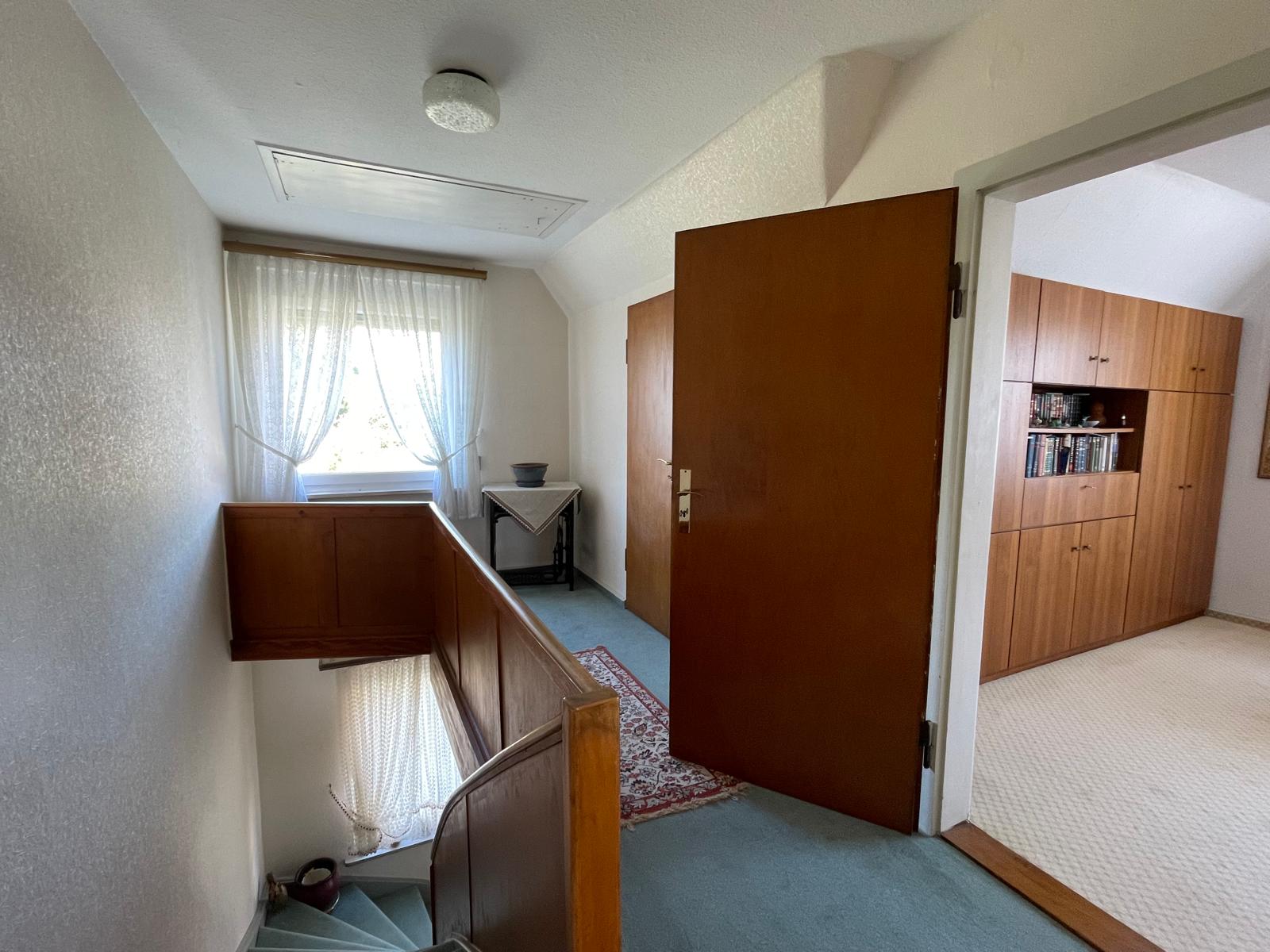 – Unausgebauter Dachboden – zusätzlicher Stauraum, Dämmung zu prüfen (eine Stromversorgung ist bereits vom Zählerkasten im Keller bis in das Dachgeschoss gelegt – nicht stromführend!)