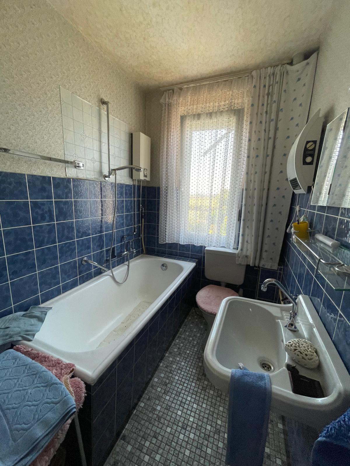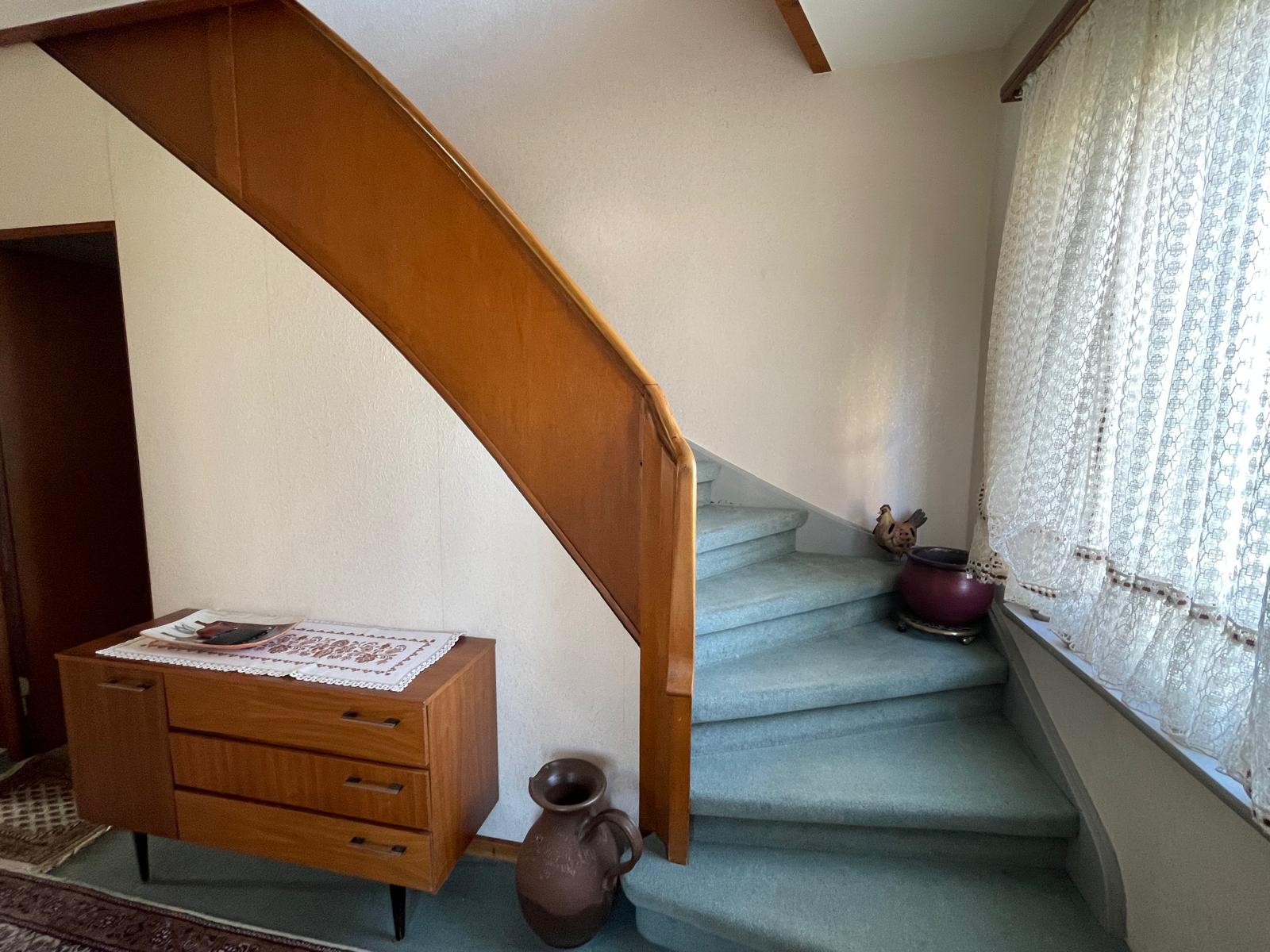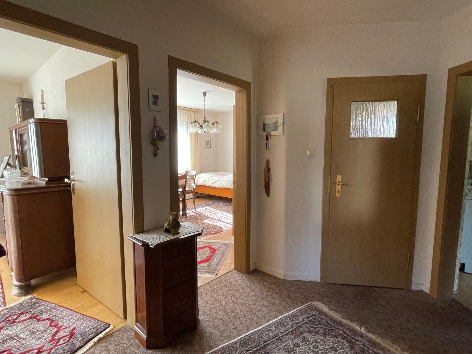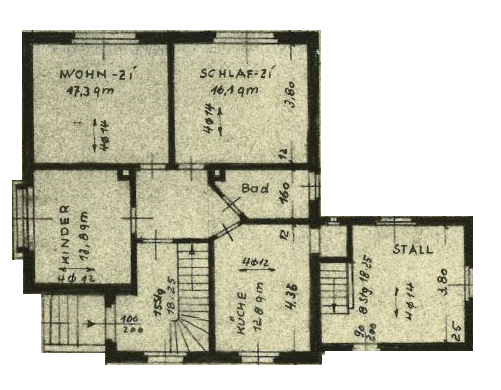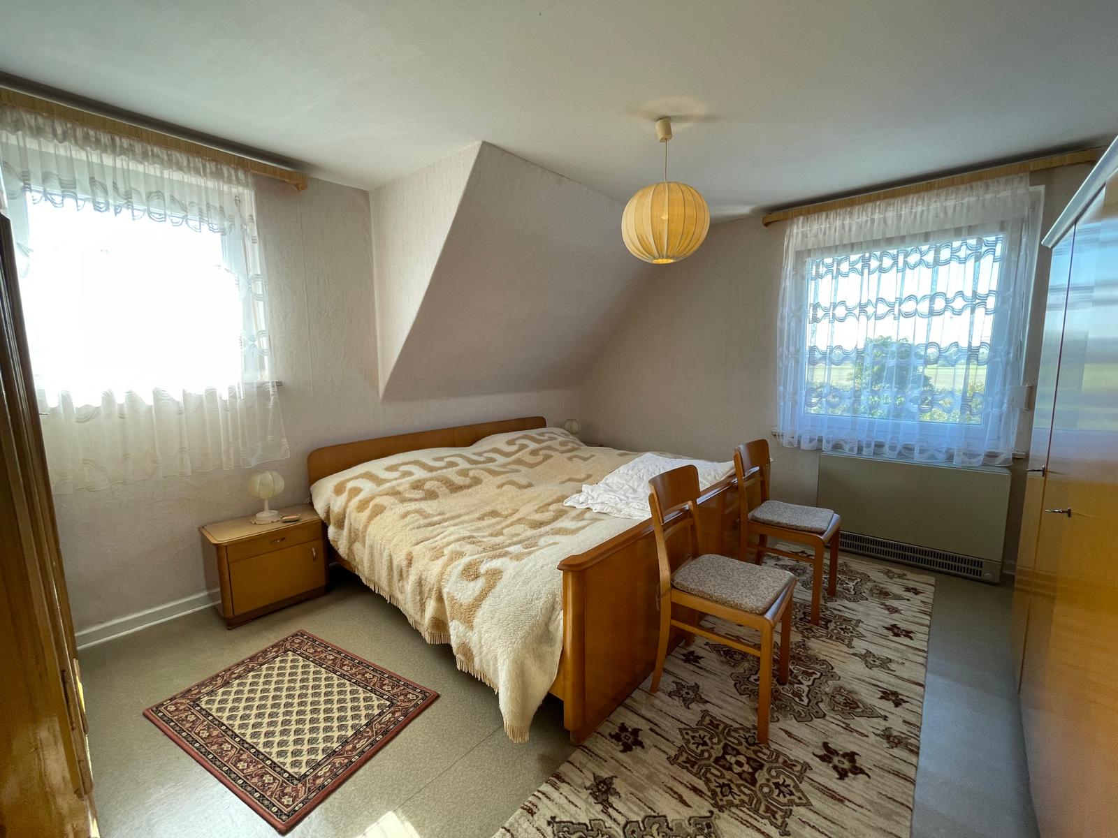 Das im Jahr 1956 errichtete Haus verfügt über eine Wohnfläche von ca. 133 m², die sich auf zwei Etagen verteilt. Im Erdgeschoss befinden sich drei Zimmer, eine Küche sowie ein Badezimmer mit Badewanne. Das Obergeschoss bietet vier weitere Zimmer und ein zweites Bad mit ähnlicher Ausstattung.