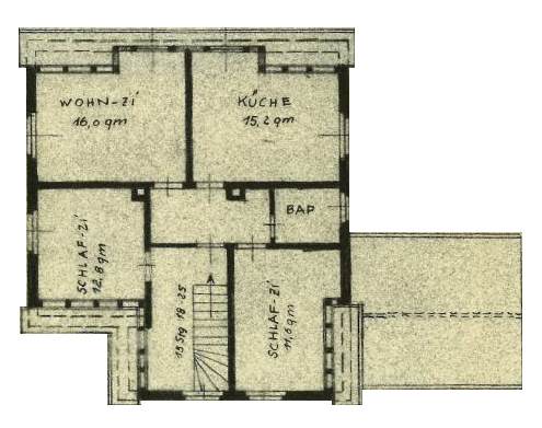 – Obergeschoss-Grundriss für mögliche Einliegerwohnung mit Küche, Bad und 2 Zimmern