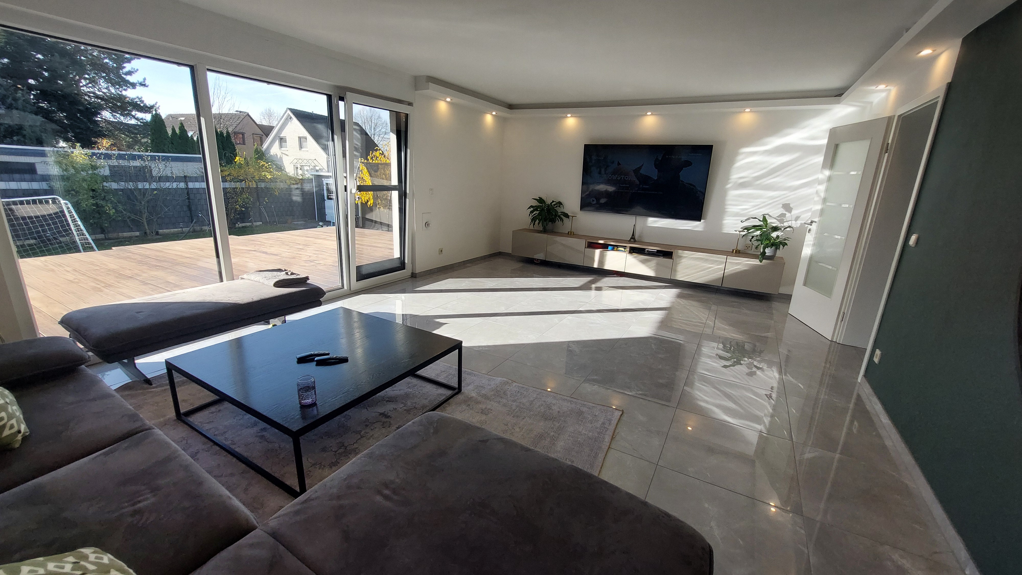 – Großzügiges Wohnzimmer mit Zugang auf Terrasse