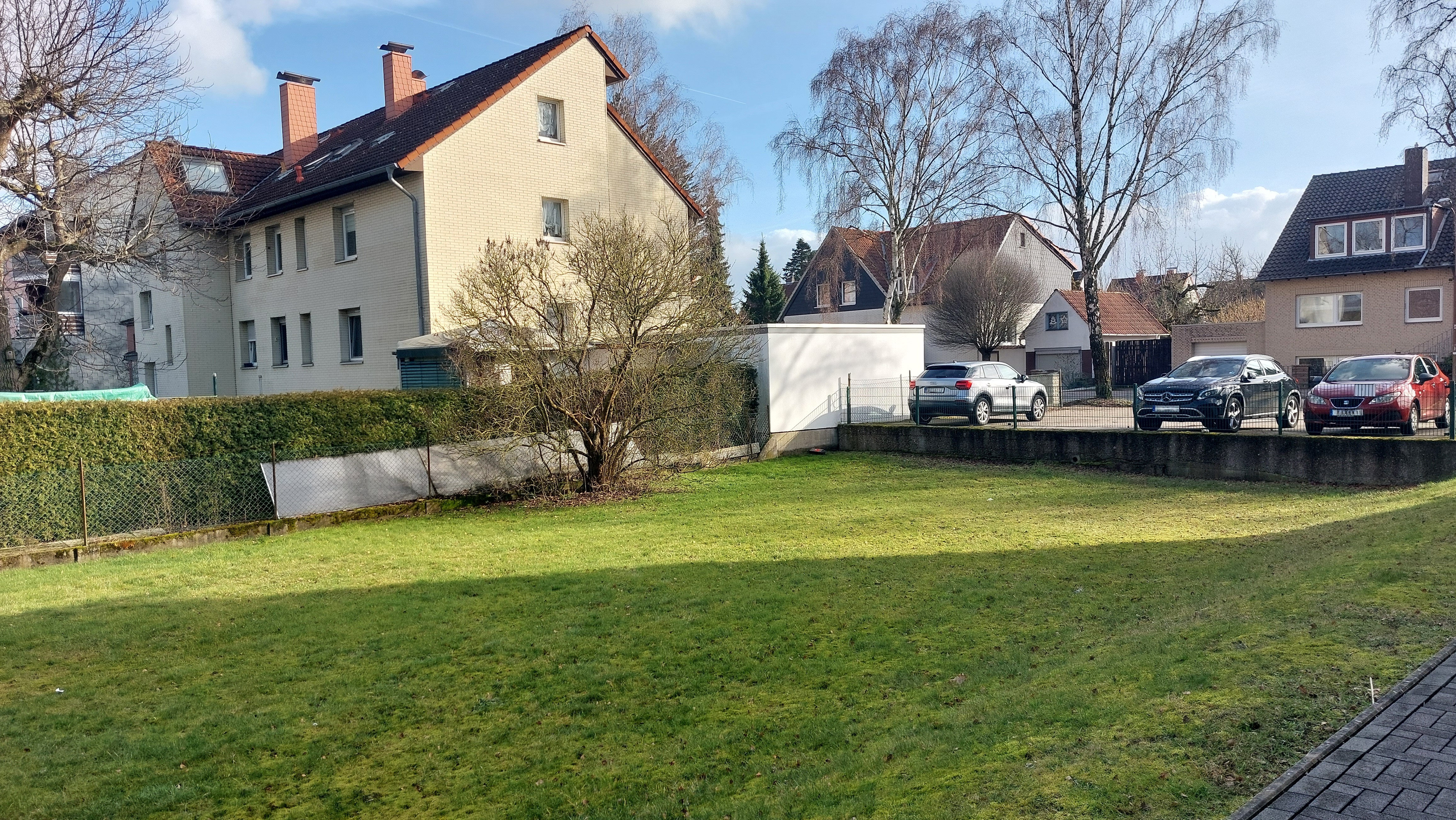 Das Objekt befindet sich auf einem 1499 m² großen Grundstück, umgeben von Grünfläche und einem gepflaster-ten Bereich für 4 Stellplätze. Parallel zum Gebäude, auf der Grünfläche, besteht die Möglichkeit einer Bebauung. Hier würde sich ein Garagenhof anbieten, um weitere Mieteinnahmen generieren zu können. Das Grundstück wird im Verkaufspreis für diese Immobilie mit ca. 100.000,00 € berücksichtigt. Weitere Informationen dazu können im Bauamt Garbsen erfragt werden.