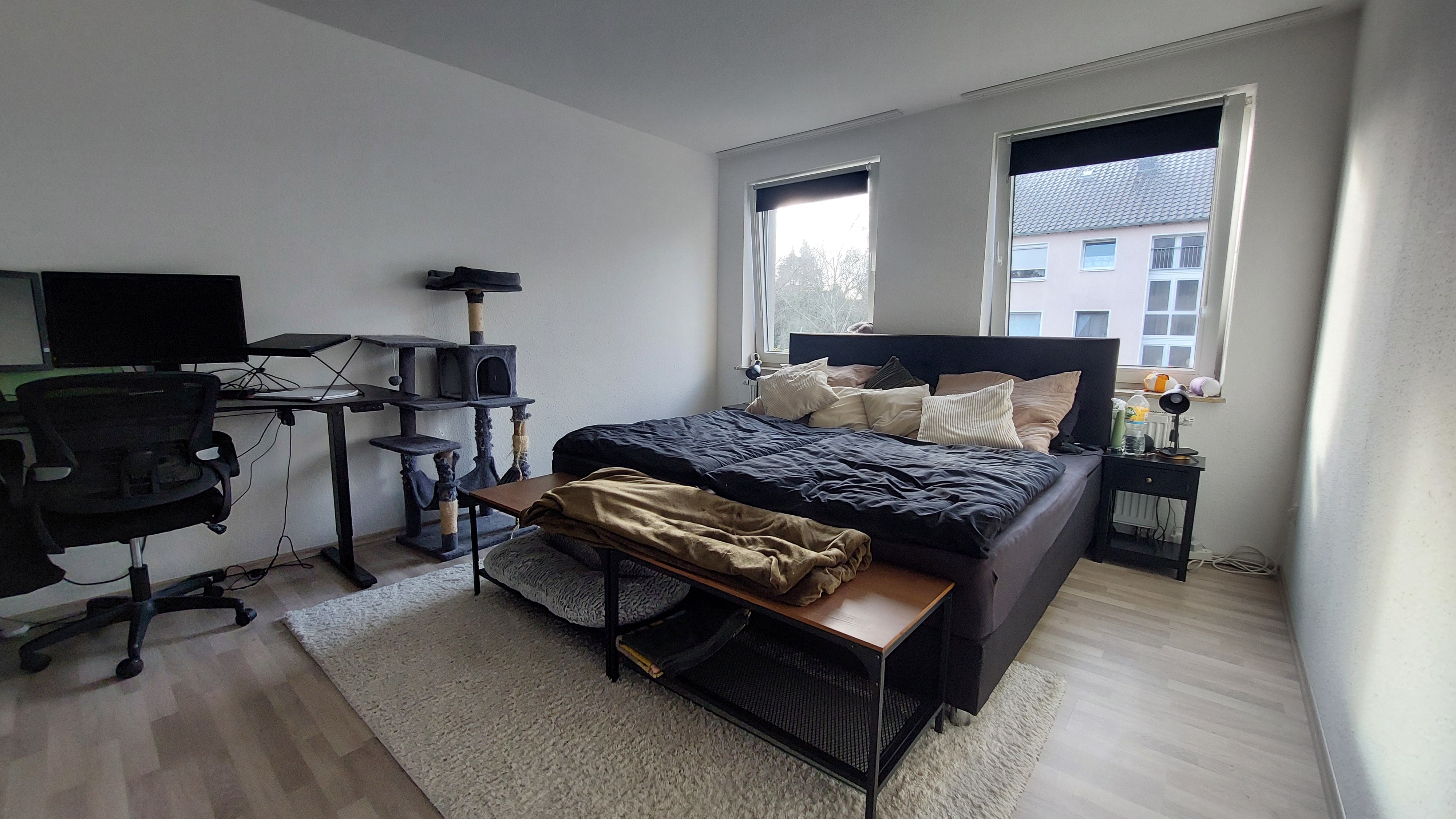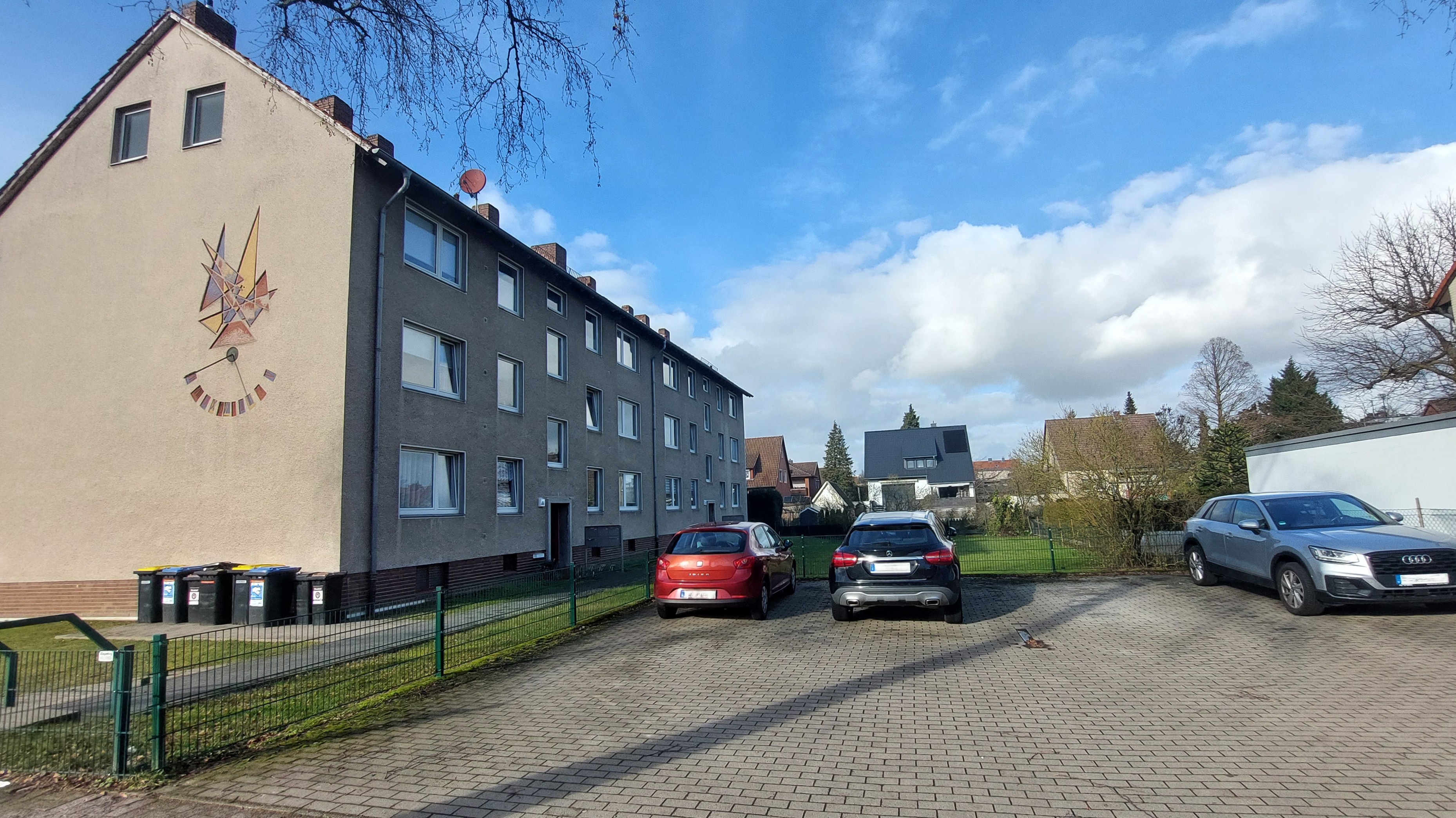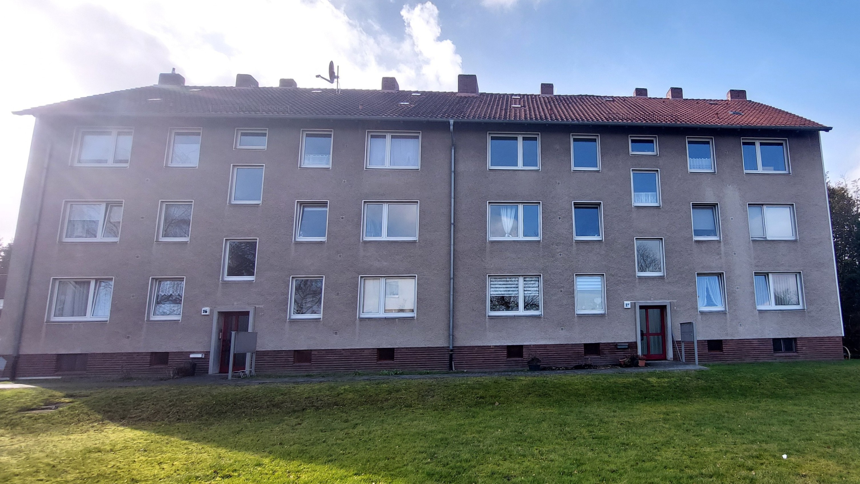 Die 2- und 3-Zimmer-Wohnungen sind praktisch geschnitten und verfügen jeweils über ein Bad mit Fenster und Badewanne. Alle 12 Wohnungen sind mit einem Balkon zur Westseite ausgestattet. In Haus A wurden 2016 umfangreiche Renovierungsarbeiten vorgenommen, so haben sämtliche Wohnungen neue Fußböden erhalten, das Treppenhaus wurde gefliest, die schöne Holztreppe aufgearbeitet und der Dachboden wurde gedämmt. In Haus B ist ebenfalls eine Wohnung mit neuem Fußboden ausgestattet.
