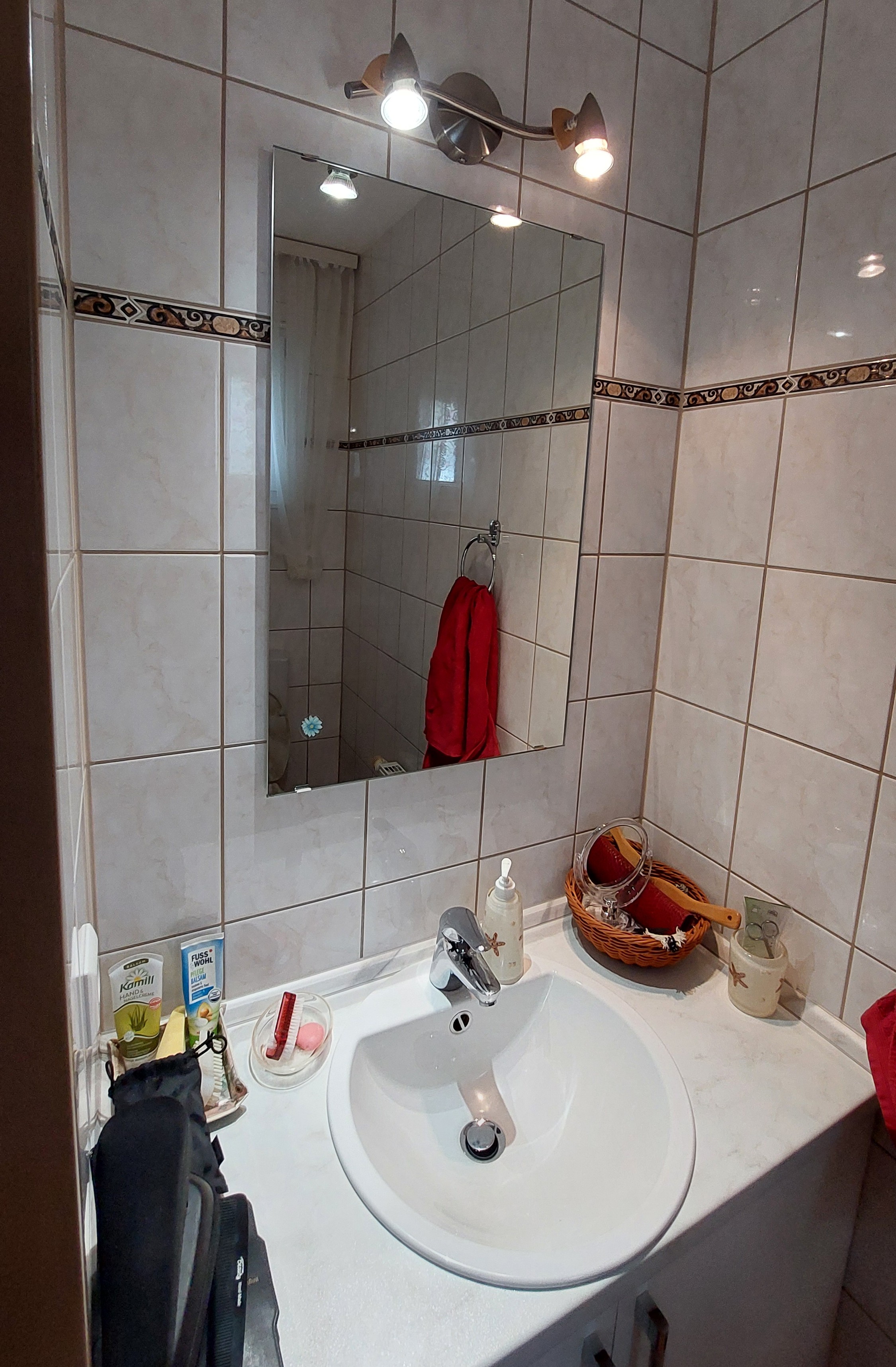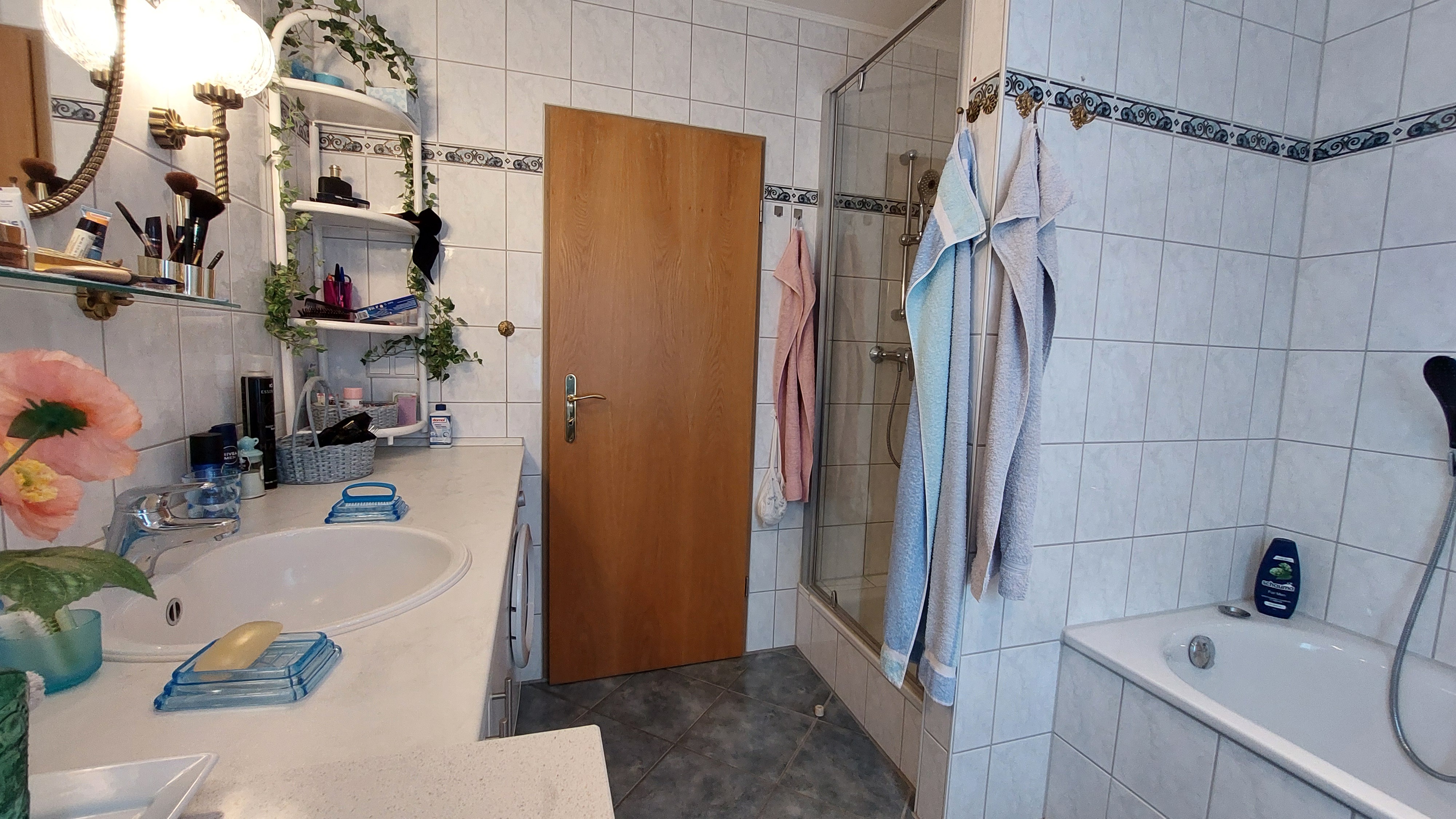 – Badezimmer mit Badewanne, Dusche, Waschmaschinenanschluss