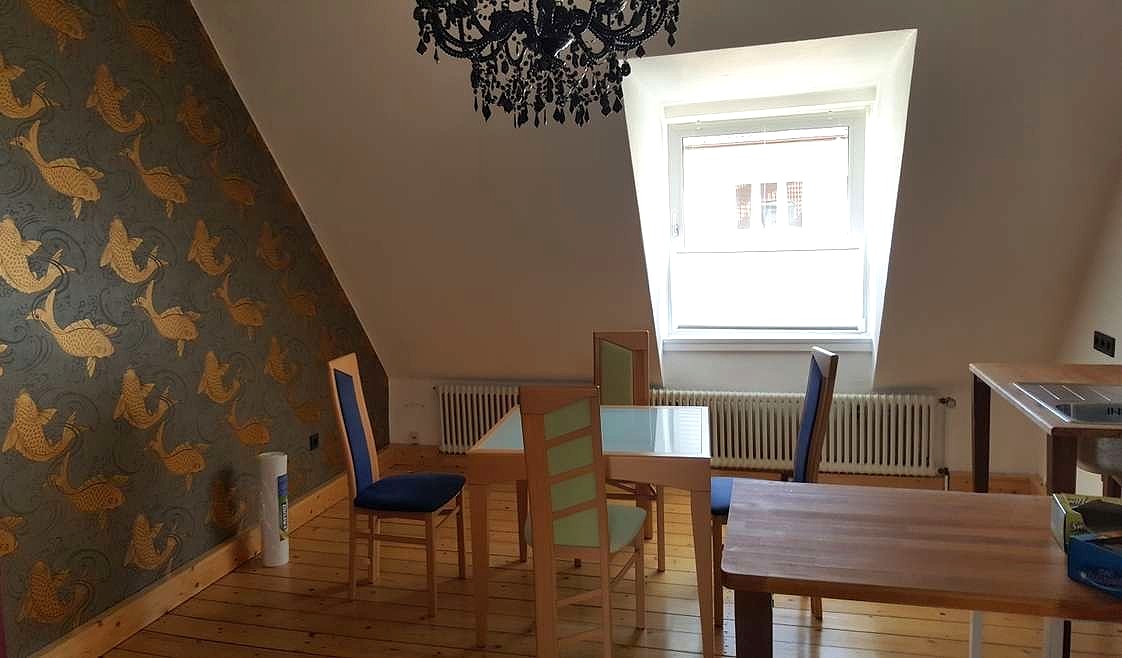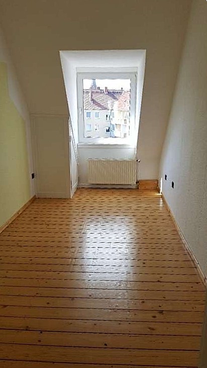 Das Gebäude wurde im Jahr 1956 errichtet und erstreckt sich über insgesamt vier Etagen. Die angebotene Wohnung befindet sich im Dachgeschoss. Sie verfügt über zwei gut geschnittene Zimmer sowie ein Tageslichtbad. Die Räume präsentieren sich hell und freundlich und bieten vielfältige Gestaltungsmöglichkeiten. Besonders hervorzuheben ist der schöne Dielenboden, der der Wohnung eine warme und charmante Atmosphäre verleiht.
