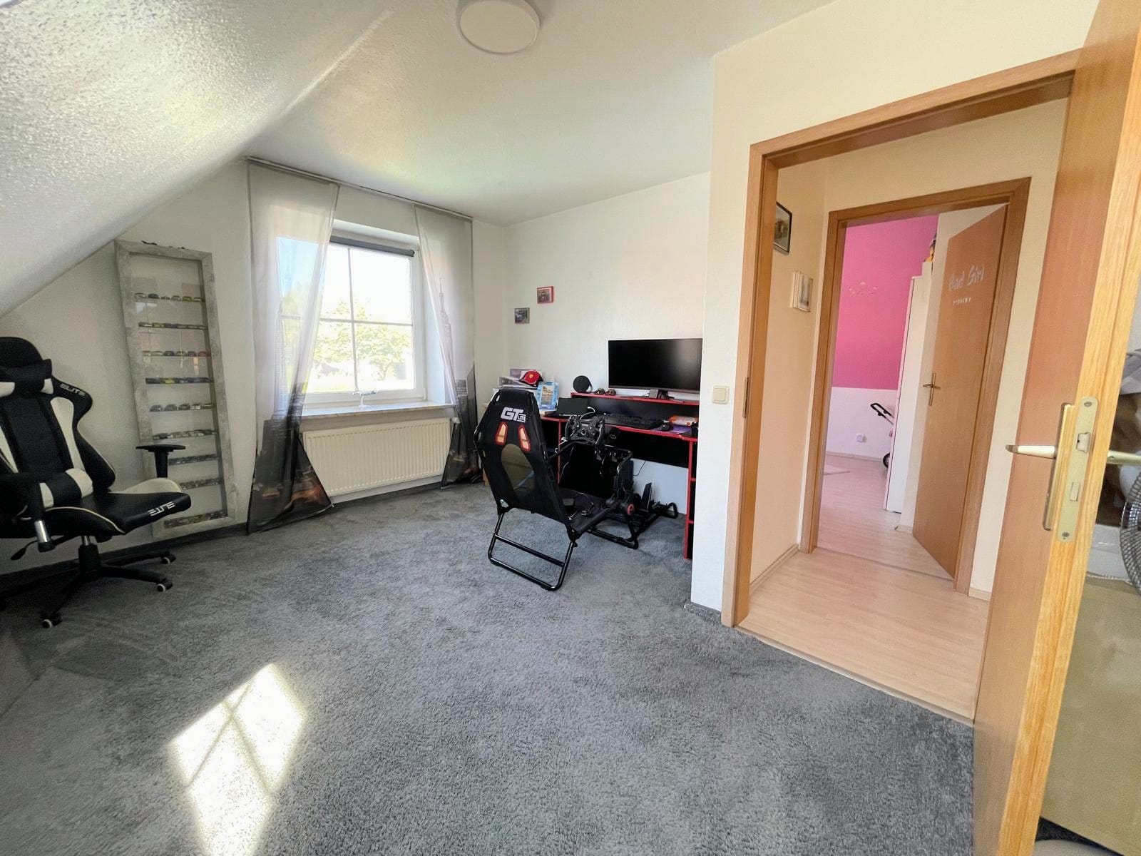 Das Obergeschoss bietet drei komfortable Schlafzimmer und ein Tageslichtbad mit Dusche und Badewanne – ideal für Familienleben, Homeoffice oder Gästezimmer. Hier findet jeder seinen persönlichen Rückzugsort.