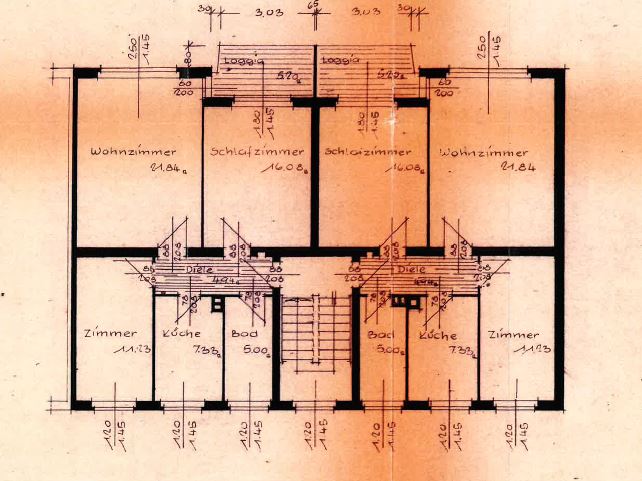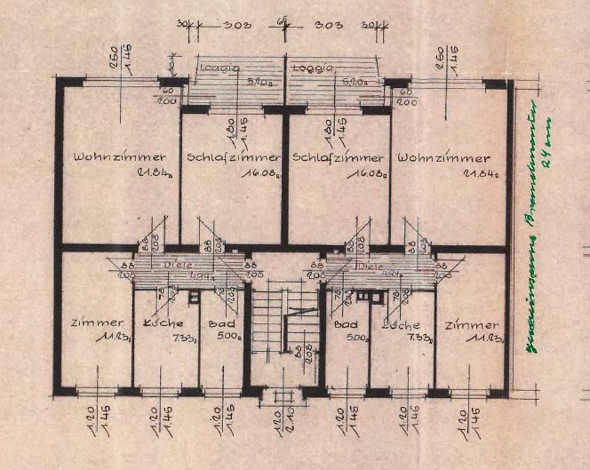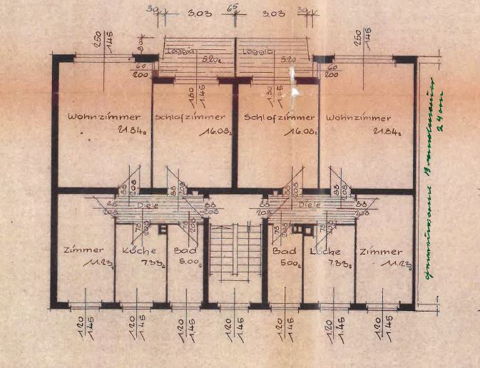 – Hochparterre rechts: vermietet seit 10-1975, Wohnfläche ca. 69 m²