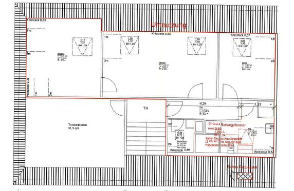 – 2024/25 Umsetzung der Baugenehmigung (Neues Dachfenster Dusche inkl. Notausstieg und Demontage WC),